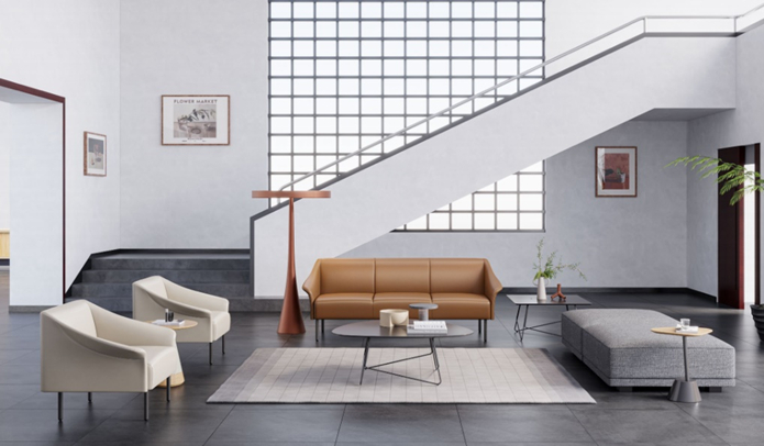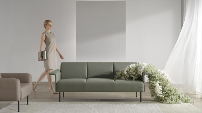 圣奥科技设计师抓住了空间的艺术基因,在2022年秋季上新的休闲沙发-花舞系列中,结合空间属性及功能需求的侧重,以“轻量化办公”的设计,传达空间的“精气神”。