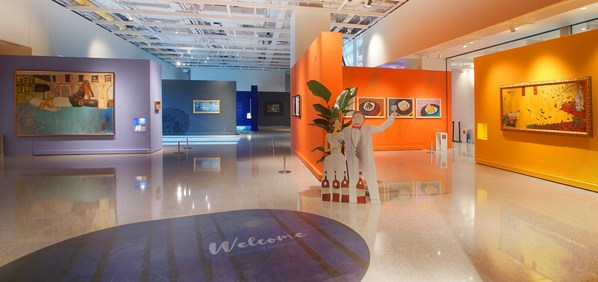 重点展品之一《圣火》描绘了坐在中心赤裸裸的人类和身后的百兽,比喻了表面上人类是万物之灵,自以为主宰了天地,但事实是否如此?答案待观众自行领悟。至于另一件重点展品《三个我》是三种不同风格的自画像,或许是艺术家感慨人们追求完美,成为一个最好的自己,直到“自己”能满足所有人。艺术家的每幅画都独有故事,用色强烈,笔触简单随性,抛弃手法技巧的卖弄,反而侧重展示画作背后的意义。每件作品都代表着一个生活时刻、一种心情;透过视觉冲击的观展体验,引起人们作更深层的自身思考,从而对艺术家所描绘的故事感熟悉或有所共鸣。