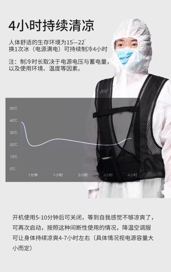 那么,这种类似于马甲背心的防疫服用空调背心到底采用了什么样的技术原理能够令防护服内的温度降低?降温效果怎么样?