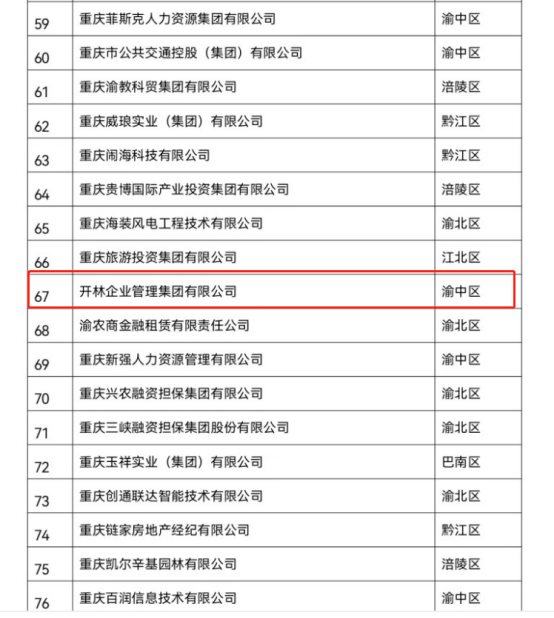 开林集团入选2022重庆服务业企业百强榜,龙湖、长安等企业均上榜