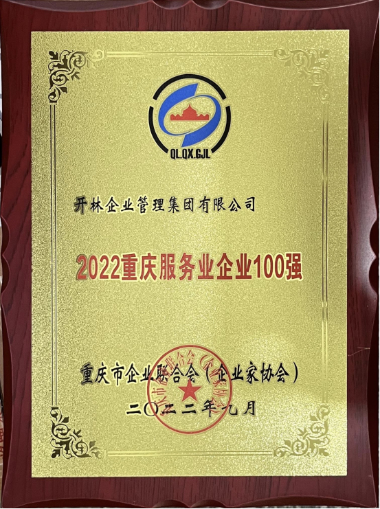 9月26日,由重庆市经信委指导,重庆市企业联合会(企业家协会)主办的“2021年度重庆市优秀企业家表彰会暨2022重庆企业100强发布会”隆重召开。此次发布的榜单之中,龙湖、长安、金科三家企业位居前三,开林企业管理集团有限公司凭借不断提升的经营效益、稳健的业务发展成果及服务创新能力,首次跻身2022重庆服务业企业百强榜单第67位,荣膺“2022重庆服务业企业百强”殊荣。