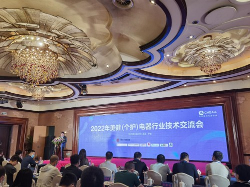 2022年9月27日,由中国家用电器协会美建(个护)电器专委会发起的2022年美健(个护)电器行业技术交流会在宁波召开。此次会议邀请了行业内众多资深专家以及来自80多家企业160多位代表出席,为美健(个护)行业企业在产品研发和生产过程中面临的共性技术难题,提出专业、多角度的创新技术解决方案,促进行业健康快速发展。渲美美健(深圳)科技股份有限公司产品线总监兼研发中心总经理陶锐、技术研究院院长徐文斌作为代表参加此次会议。