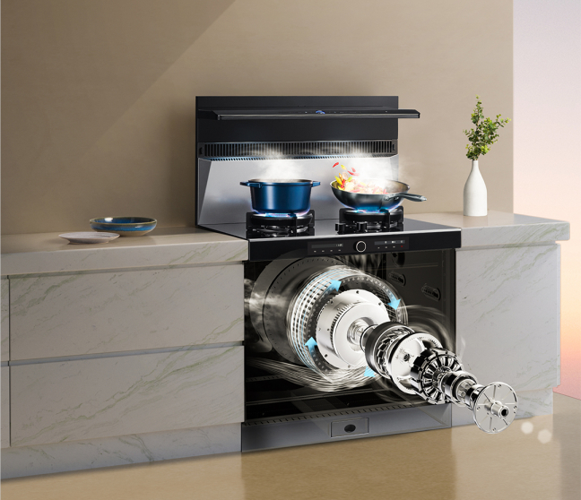 火星人ET50仅48.5dB的超低噪音领跑行业第一。而支撑其超静音的技术一是全新U型风道降压降噪系统,单向风道设计,减少紊乱气流在风道内左右流窜,从而降低风噪;二是仿生鲨齿叶轮:通过叶片上的鲨齿设计,像一把梳子一样将紊乱的气流梳顺,从而降低噪音;超静音厨房环境,不再错过每一通重要电话,不再打断每一次温情交流。