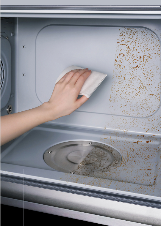 瓷膜防护内胆,最早应用于军工潜水艇行业,材质颜色为灰白色,表面质感光亮、触感滑润,类似于陶瓷,具有极强的疏水疏油性,蒸烤模式烹饪后,残留的油污、水渍可一擦即净,大大提高用户的清洁便利度;同时具有优良的附着力,能强有力的与不锈钢进行结合,不易脱落,可共同形成内胆三大保护层:不锈钢层、密着层、瓷膜防护层,更加耐磨损,便于清洁。