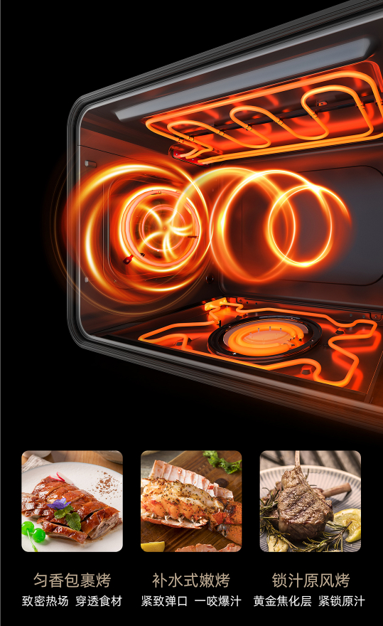 火星人ET50打造大师级蒸烤炸一体箱,在家就能畅享米其林风味。其采用双管平嵌超大蒸汽系统,200mm超大蒸汽发热盘能够发出澎湃蒸汽;火星人专业实验室与中国农业大学共同深度剖析,经过反复实验,研究最佳温度120℃,打造120℃快速蒸模式,保持汁水丰盈的同时营养不流失,营养和口感并存;补水式蒸汽嫩烤保障均匀受热,让食物外酥里嫩,尽享美味;高速循环热风空气炸,和高油挥手再见,脱脂低卡更健康,轻享美味无负担;三面六管环流热场,配合右侧风扇,让热量充盈箱体的每个角落,均匀包裹食物,穿透表面抵达食物内里,拒绝半生不熟,大体积厚实肉类也不在话下,大师级烹饪,鲜香美味在家即享。