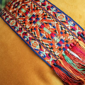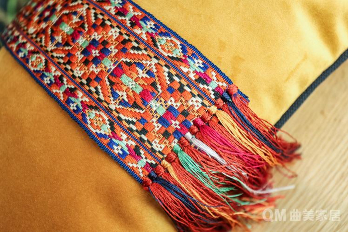 在挖掘苗绣文化的基础上,设计师翠翠结合现代居室空间的装饰风格,突出苗绣的核心精髓,设计出小而美的抱枕。极具代表性的图案,富有民族特色的手工织带,既提高了装饰物的感染力与人情味,又体现出非遗的艺术之美。