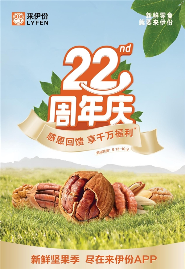 正如来伊份联合创始人、总裁郁瑞芬所说,“来伊份22年来专注做好新鲜零食,不辜负新鲜探索的每一份付出,愿每一位美好生活的打拼者都能在家门口品味到每一口新鲜零食的温暖”。