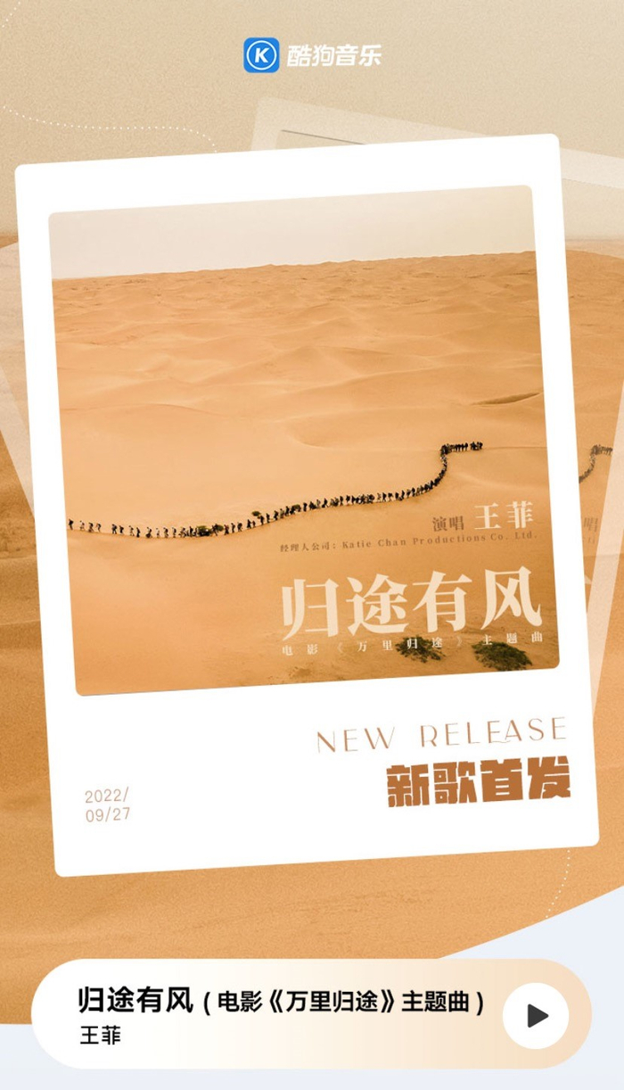 酷狗上线王菲新歌《归途有风》 与电影《万里归途》适配度太高了
