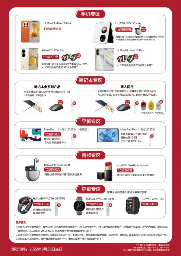 逛了、看了、摸了,是不是想把它带回家,华为智能生活馆·荣德国际店能给你家人的实惠吗?可以!2022年9月25号正式开业当天,生活馆将提供海量感恩回馈券,同时活动当天还会有神秘打卡任务,7个关卡挑战成功即可获得线上线下抽奖资格。