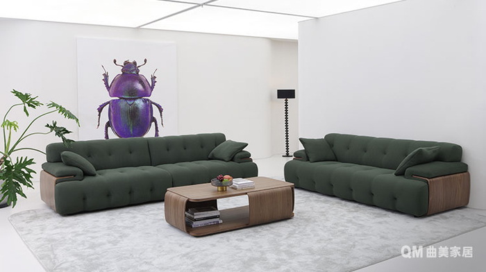 “河湾”系列产品在家具的弯曲度上,以河流蜿蜒曲折的造型为设计灵感,在沙发扶手、桌腿、床头等细节处,融入自然的弯曲弧度,不仅能与整体家居空间相融合,更能让消费者感受到家具产品与自然的巧妙融合。