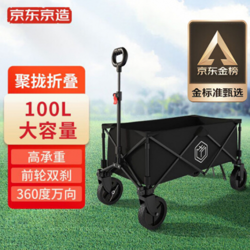 轻量化正成为露营产品的卖点之一。京东京造的一款户外露营车,凭借容量大与轻量便携的双重优势,成为京东金榜TOP级商品。这款户外露营车容量约100L,承重达120kg,可轻松容纳各种物品,收折体积小、易携带,且仅需3秒即可快速收纳。