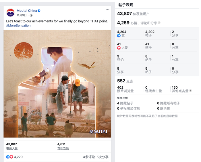 该系列贴文将茅台品牌、匠心精神、酿制工艺、中国传统文化等内容,与海外粉丝的日常生活方式、乐观正面的生活态度进行了巧妙融合,以此激发海外粉丝丰富的联想力和情感共鸣,加深他们与茅台品牌间的联系。