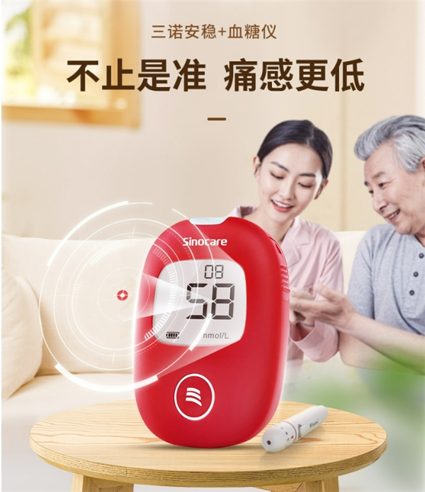 其实,现在选购血糖仪也不一定非得去买那种价格昂贵的品牌。虽然是一分钱一分货,但随着国内经济的发展和科技的进步,很多国产品牌也拥有了能与进口产品相毗邻的先进技术。以国内行业比较领先的三诺安稳+血糖仪为例,这是一款国产品牌产品,质量且为上乘,最为明显的优势就是产品的性价比高,且测量的数据也蛮精准的;最主要的是这个产品的公司已经在血糖仪行业深耕了20年,专业做这方面的研发,就是为了能让每一位糖友都能用上血糖仪来监测自己的身体状况。所以,这个品牌的产品升级了,但是价格依然比较平价,尤其是作为消耗品的试条,更是如此。