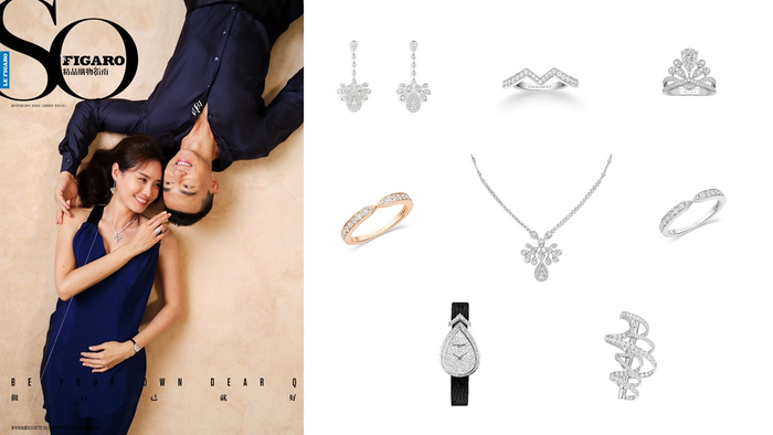 Triomphe de CHAUMET对戒以“V”形切面设计与二位完美呼应,唤醒彼此间无限深情。王婉霏腕间萦绕的女王·冠冕表耀人夺目,散发典雅女王力,衬托其刚柔并济的摩登气质。