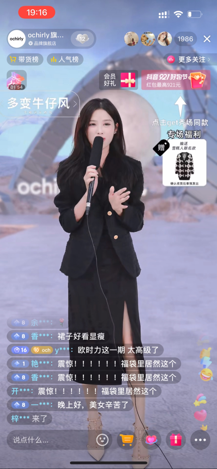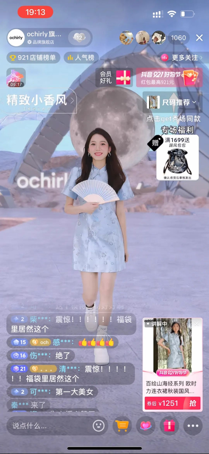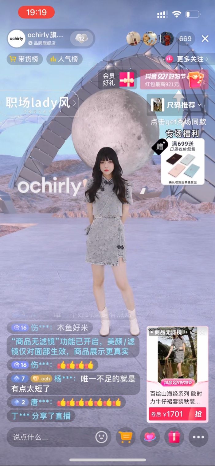 无独有偶,欧时力和品牌服务商齐鸣传媒则策划将“山海经”系列的新品T台秀搬进了“抖音921好物节”直播间。直播间T台秀给了观众非常强的视觉感官体验,配合新款、IP联名款、明星同款等货品,欧时力迎来了流量和销量的全面爆发。“抖音921好物节”期间,欧时力直播间在销售层面,整体GMV完成率达到了110%,单场最高GMV较日常增长260%;在流量层面,单场最高曝光人数较日常增长230%,单场最高粉丝增长数较日常增长240%。