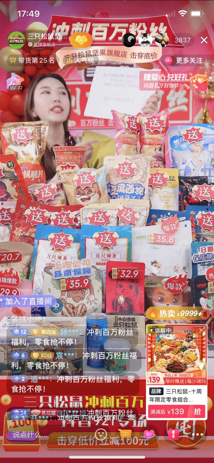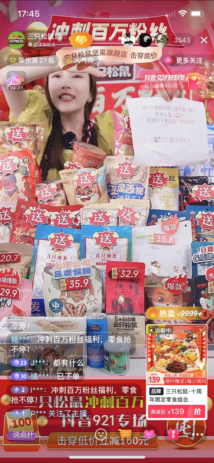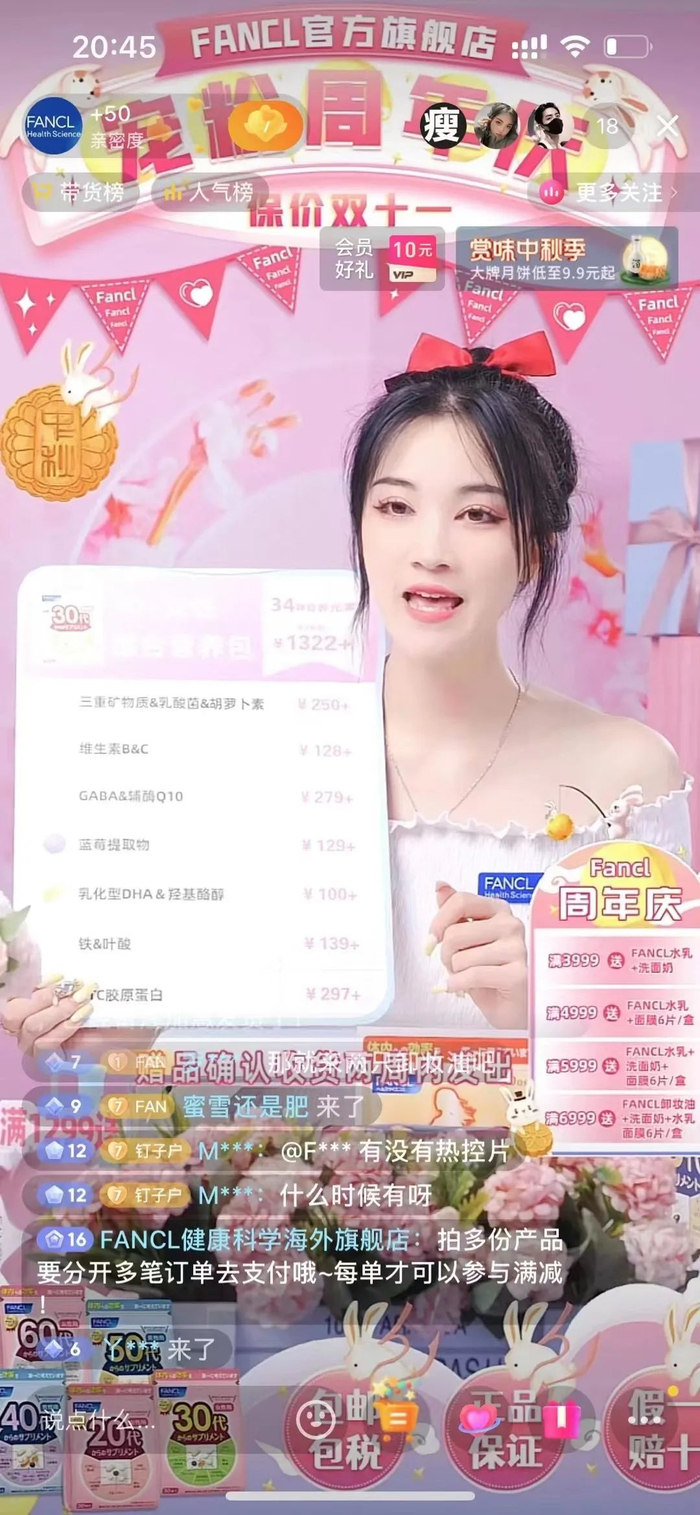 采取类似选品策略的还有三只松鼠的服务商无忧传媒,以及FANCL的服务商妙生。通过爆款+福利+活动促销价,无忧传媒帮助三只松鼠实现了“抖音921好物节”整体GMV完成率490%的成绩。而FANCL和妙生则通过滚动讲解提前测试好的1-2款主推款,实现了单场销售额相比日常提升100%-150%,转粉率较日常提升提升130%的优异成绩。