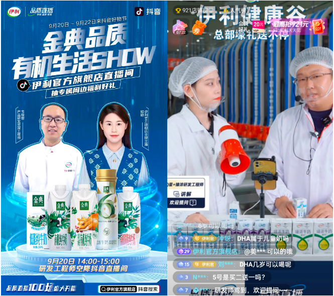 7月12日,伊利现代智慧健康谷工业板块中的重量级项目——伊利智造体验中心、奶粉全球智造标杆基地、液态奶全球智造标杆基地及敕勒川生态智慧牧场正式完工并投入使用。伊利和瓜瓜将“抖音921好物节”直播间搬进伊利现代智慧健康谷,旨在通过大促获得销量提升的同时,更能对伊利的品牌理念和健康谷进行一次多维度的宣传。