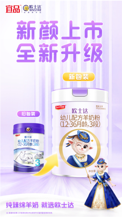 对于新生代父母来说,奶粉的品牌、品质很重要。但当这些都有了国家严苛的标准来为消费者保驾护航后,奶粉的颜值,也越来越受到关注。欧士达作为上市3年的绵羊奶品牌,紧跟市场需求,深化对消费者的理解,继营销创新后,焕新升级产品外包装,精心设计俏皮可爱纯羊公主IP形象,彰显“纯羊”特性,提升产品颜值,吸引消费者目光。