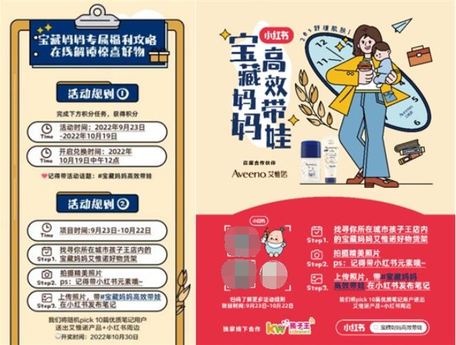 小红书联合首席合作伙伴——高效、天然、安全、科学的婴儿护肤品牌艾惟诺,一站式购物及提供全方位增值服务的母婴童行业零售领军品牌孩子王的线下百家门店,还有小红书社区内众多母婴专家、母婴博主,打造「宝藏妈妈高效带娃」的年度企划,为新手妈妈答疑解惑,为职场妈妈提供高质量育儿方案,为新世代妈妈们的不同诉求提供了行之有效的解决方案。