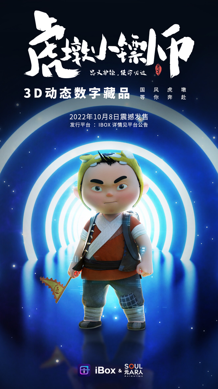 10月8日,元人动画携手iBox发布《虎墩小镖师》3D动态数字藏品,本次数字藏品将以3D视频形式展现国风小镖师虎墩。