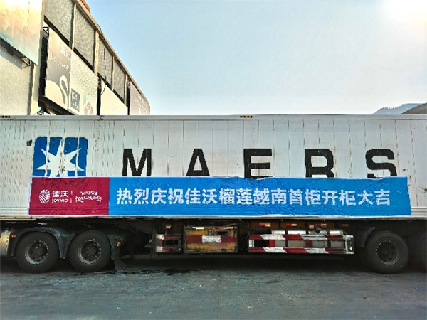 9月30日,首柜来自越南产地的佳沃榴莲顺利抵达河北高碑店批发市场。自7月27日越南榴莲被海关总署批准进口后,佳沃榴莲紧贴市场消费者需求、在越南产地积极部署,并在短时间内完成采收、通关、运输等等环节,越南产区的佳沃榴莲正式登陆中国市场,拉开销售序幕。