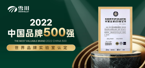 2022年《中国500最具价值品牌》的总价值为309728.07亿元,今年入选品牌的最低门槛为31.67亿元。世界品牌实验室(World Brand Lab)是一家国际化的品牌价值研究机构,世界品牌实验室的专家和顾问来自哈佛大学、耶鲁大学、麻省理工学院、哥伦比亚大学、牛津大学、剑桥大学、欧洲工商管理学院等世界顶级学府,其研究成果已经成为许多企业并购过程中无形资产评估的重要依据。连续十九年发布的《中国500最具价值品牌》,采用“收益现值法”对品牌价值进行测评。这是基于经济适用法,综合了消费者研究、竞争分析以及对企业未来收入的预测。排行榜因其专业性和独立性,而受到全球上市公司的广泛认可。是衡量中国品牌价值的重要风向标。雪川连续两年获得中国品牌500强,彰显了卓越的品牌价值与实力。