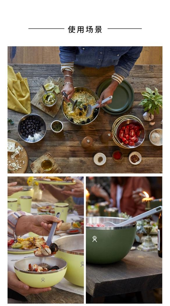 采用18/8专业级不锈钢制成,经久耐用且确保食物味道纯正不会窜味,它直径25.4cm,容量更大更实用,露营野餐时无论是盛放沙拉、意面,还是盛放凉拌菜、炒菜,这个大小都刚刚好hold住。