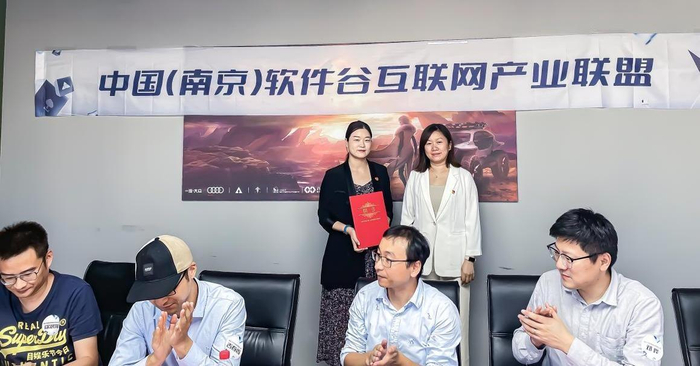 中国(南京)软件谷党政办公室副主任、软件产业党委副书记邹晶晶为产业链党建联盟单位颁发聘书。互联网产业链党建联盟一直坚持党建引领,着力打造系列党建品牌,围绕党建这条主线,以“1+N”模式,聚合力、促发展、强服务,切实为企业办实事、办好事、解难题,推动党建与业务深度融合,引领互联网企业高质量发展。