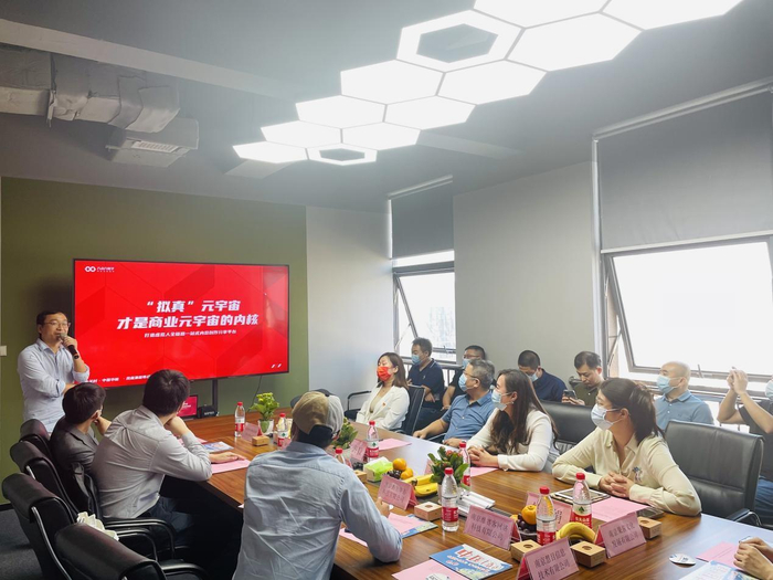 活动现场,企业家们共同参观了联盟新成员企业代表——南京八点八数字科技有限公司。八点八数字是国内一流虚拟人全链路服务头部企业,上海多媒体协会金牌会员单位,获得ADMEN国际年度最具商业价值行业服务机构奖,元宇宙新兴数字技术领军企业。耿广星先生现场为成员企业代表们带来了以“拟真”宇宙才是商业元宇宙的内核为主题的分享。他指出在看得见的前沿技术发展浪潮之下,各行各业需要一个个全真互联场景的落地来解决真实世界中实实在在的问题,创造无限量的实质性价值。