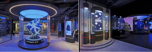 此次门店升级采用多样的数字化媒体技术和互动设备,以“数字科技、潮流文化与人的连接”为核心,力求为消费者带来高水平的声光电零售新体验,打造高科技的创新店铺形态。进入一楼主入口,映入眼帘的便是巨幅的数字感应地板,地面动态图案的变化与动效让消费者宛若置身于新品发布主题空间,随手即可选购适合装备,开启“健康模式”。更特别设置了尖货臻选站,消费者可为自己心仪的尖货进行投票,旨在颠覆想象的四维交互装置将消费者带入视觉圣境。