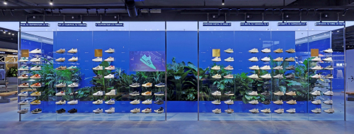 秉持着品牌的可持续发展基因,阿迪达斯将“循环设计”理念融入门店的多个方面:尽可能使用环境友好且可再生建筑材料,引入可再生能源与高效节能系统。总面积将近400平米的光伏幕墙与店铺的外立面融为一体,充分展现科技元素的同时,也力求向每一位即将进入店铺的消费者传达可持续发展理念。该光伏发电板每年可以发电超过4万千瓦时,成为店铺用电的绿色来源,每年约可帮助减少44吨二氧化碳的排放。店内使用环保材料,所有的购物袋都是可循环的纸质购物袋,布满绿植的设计也给消费者带来贴近自然的购物享受。阿迪达斯用实际行动期望引导消费者与品牌一同享受更加可持续的消费与生活方式,为生活和世界带来积极影响。