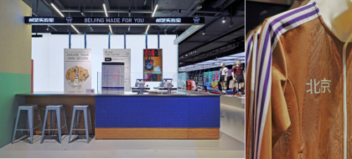 二楼设有的北京“创艺实验室”,让消费者们可以打造专属自己风格的定制产品,开业活动期间,adiCLUB会员购买服装产品更有机会享受个性化北京元素刺绣定制服务,留下自己与北京“独一份儿”的记忆。