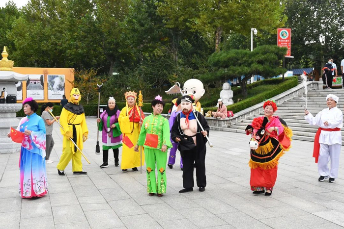 西游记情景剧也在景区内热闹上演。师徒四人漫漫取经路通过演员的一比一划一点一滴生动的呈现在游人面前,乐趣繁多。