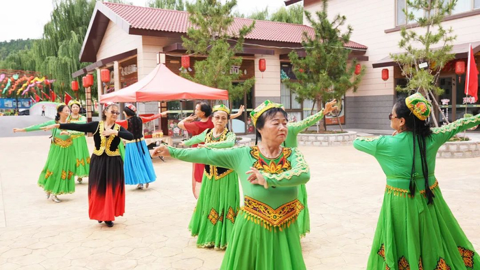 在健康文化小镇花海中云游拍照岂不美哉乐哉?少数民族舞表演风格浓郁、地域特色鲜明,让游客真切感受到了少数民族的气质和风貌。