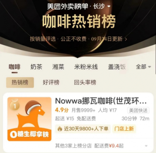 NOWWA挪瓦咖啡咖啡单店外卖突破9999+ 背后有哪些神操作?