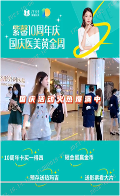 六、十周年庆遇上国庆周,快乐加倍国庆7天长假,迎来一波报复式外出消费的小高潮。也有不少人响应“就地过节”的号召,恰好有着难得的恢复期,很多顾客想趁着小长假悄悄变美,而整形则是小长假的首选。广州紫馨推出整形三重矩惠:预约金100元抵10000元,分期免息0首付0利息,安馨美享特权3免3送,让顾客变美无负担。