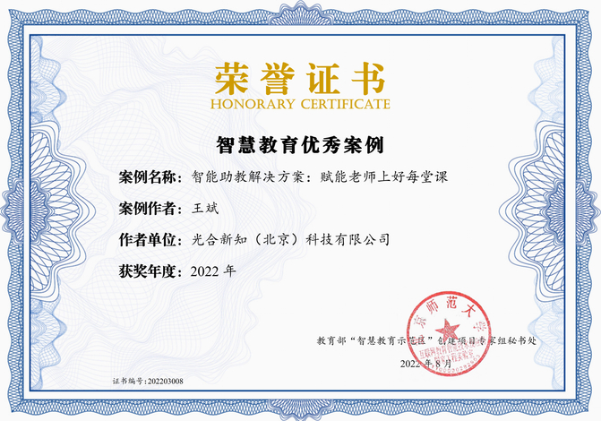 公司自主研发的“智能助教解决方案”是教育部“智慧教育示范区”智慧教育优秀案例,通过将教学过程智慧化、智能化,精准呈现知识原理和脉络,真正做到了赋能教师、学生减负增效,成为学校教育的有益补充,切实促进优质教育均衡发展。