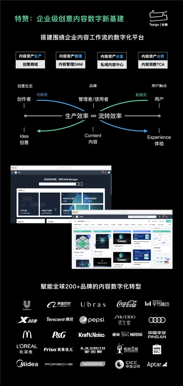 特赞Tezign 的使命是用科技赋能商业和社会的想象力。自2015年创业以来,始终专注于技术与创意的融合,致力于搭建创意内容的数字新基建,为全球品牌提供内容体验的生产、管理、分发、分析的解决方案,赋能品牌的内容数字化转型,助力品牌以内容驱动增长。
