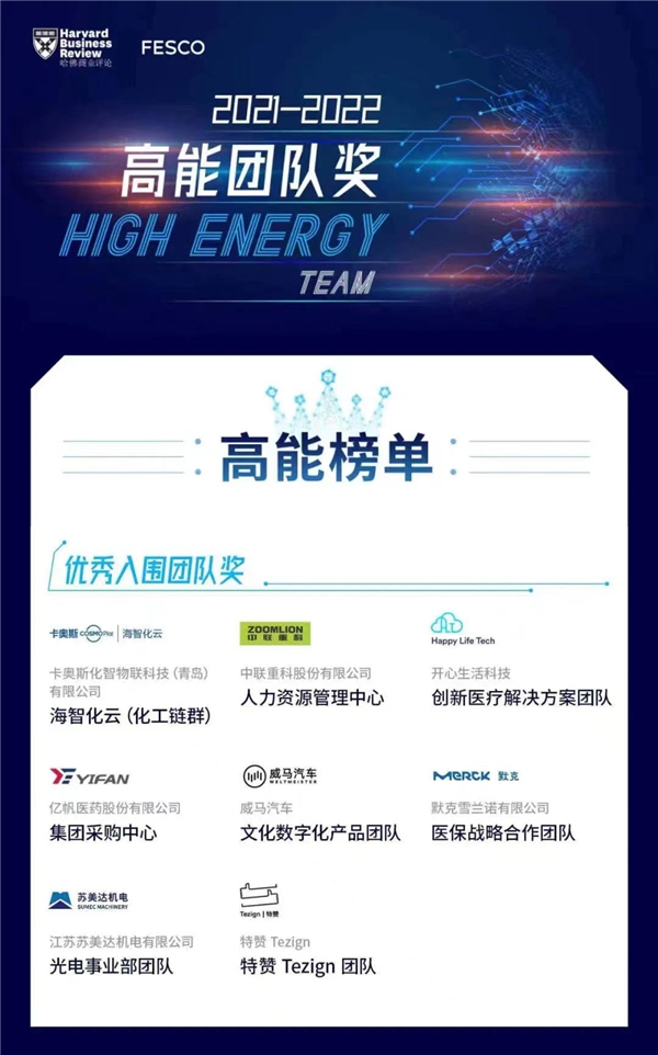 哈佛商业评论-中文版联合FESCO 举办「高能团队奖项」评选,旨在发掘敏捷创新,高成熟度的组织。奖项围绕组织的“创新能力,团队吸引能力,战略执行能力,业绩影响能力,敏捷应对能力” 进行综合评选,评审均来自学界和商界的意见领袖,一轮评选后40个团队脱颖而出,特赞也成功入围!