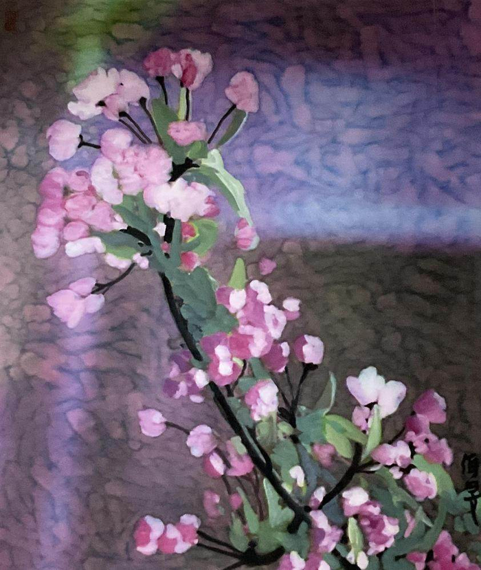 杨佴旻是中国画实力派画家,有着非常敏锐的时代意识,不满足于传统水墨的当代局限性,而从色彩出发多年,孜孜不倦致力于中国画的变革,因为其独一无二的中国画色彩成就,被学术界誉为中国“色魔”,继林风眠、吴冠中后融合中西又一人。在时代变局中,杨佴旻在绘画技法上进行新的突破:用更加细微融合色彩的笔触描绘物象或图像,创作出斑驳朦胧的独特视觉语言,不仅和优雅美丽的“豹纹”略有相似,更体现出艺术家调和中西的才华和革新中国画的勇气。杨佴旻将中国绘画放到了世界绘画的版图上,与这个时代产生强烈的共鸣。