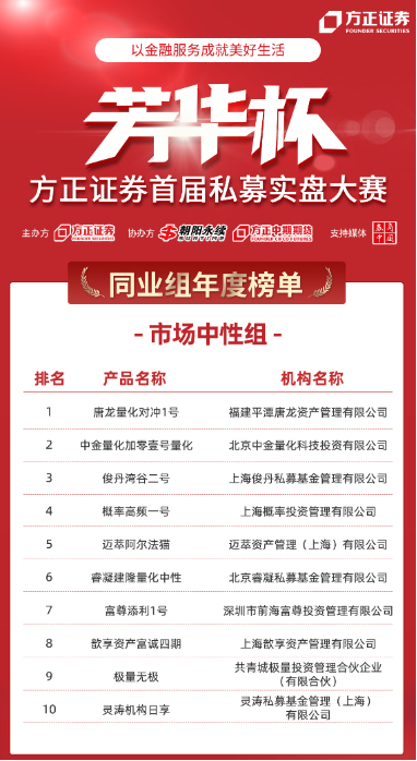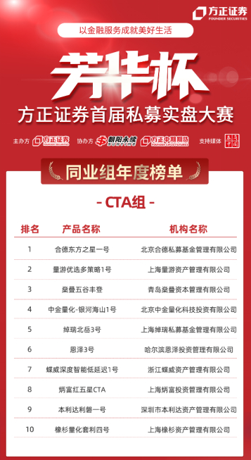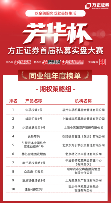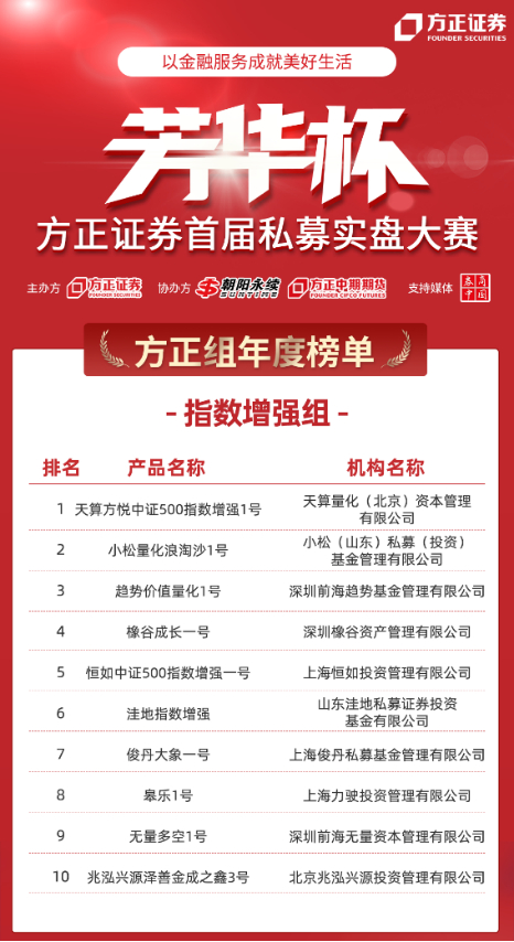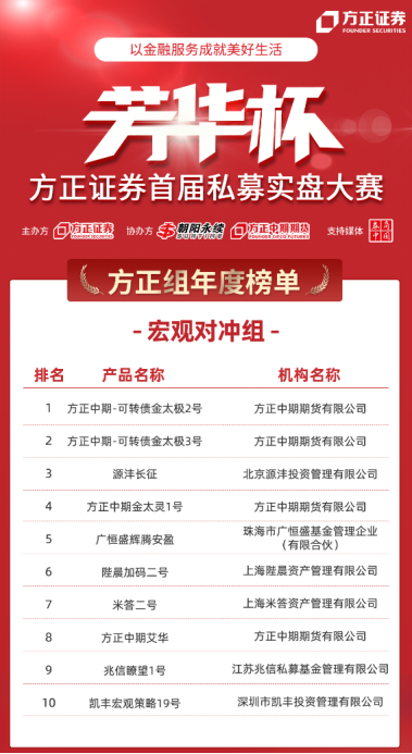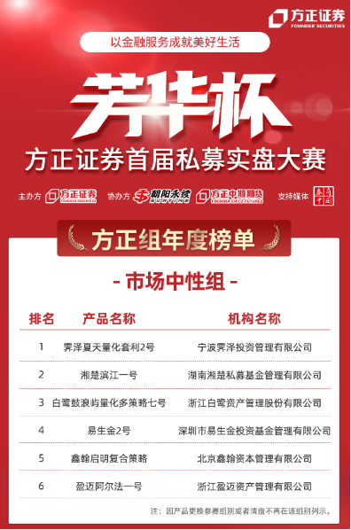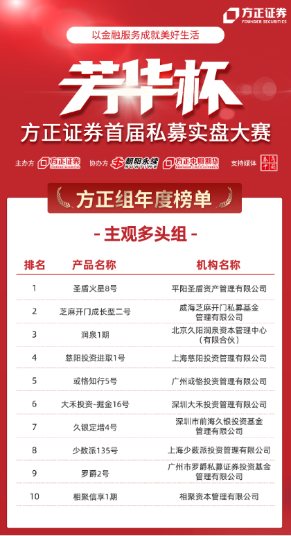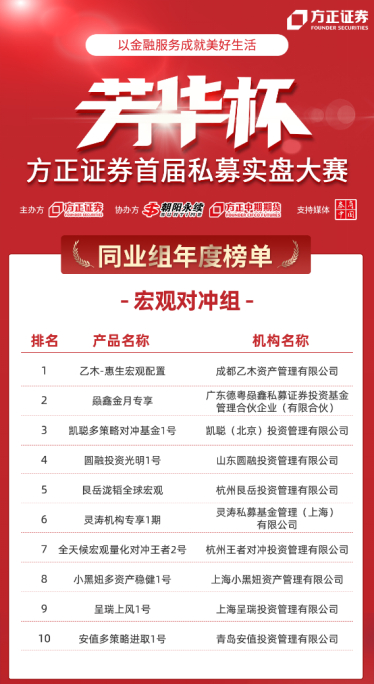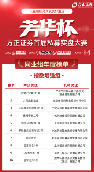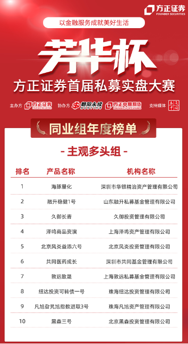 方正证券首届“芳华杯”私募实盘大赛年度榜单公布