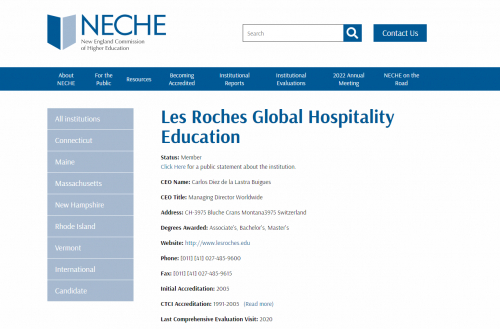 瑞士第一所获得新英格兰院校协会技术和职业委员会认证的酒店管理学院