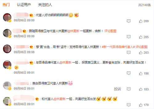 依托明星本身所具有的流量池,在评论区内,就引发了不少用户的应援热潮,幽默、阳光、趣味的氛围被搭建而出,在实现品牌与用户之间“同频共振”的同时,打破了传统厨电的刻板印象,以一种更年轻、活力的触达品牌目标用户群。