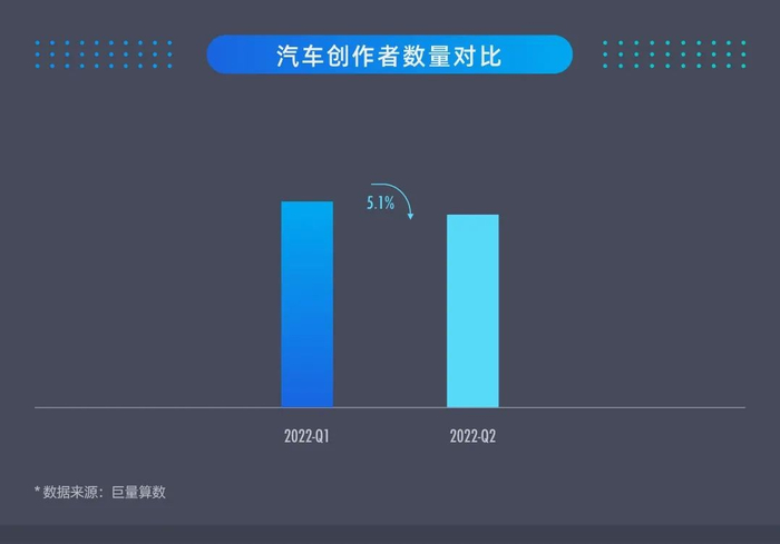原计划于4月举办的北京车展取消,部分创作者工作受到影响,创作者数量略有下滑,整体来看,2022年第二季度创作者数量环比第一季度微降5.1%。但高涨的创作热情让创作者数量从5月开始呈现企稳反弹态势。