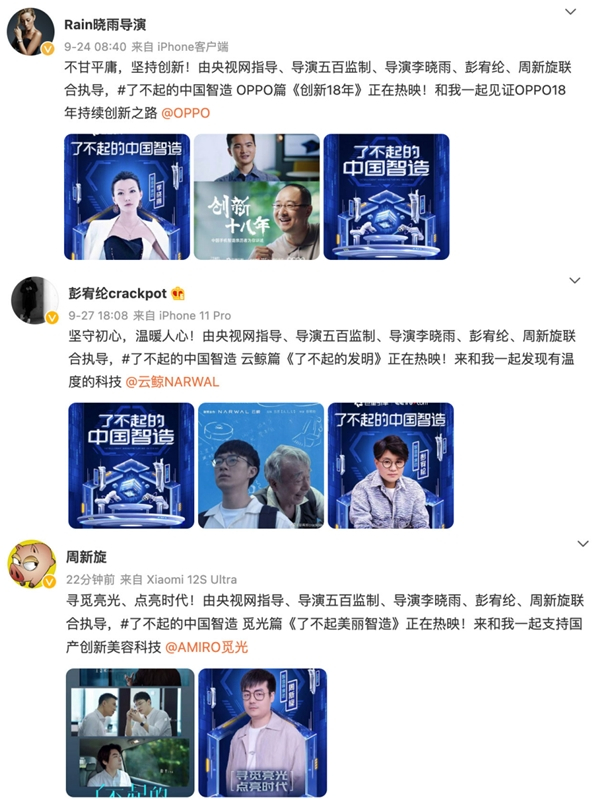 巨量引擎特别打造IP《了不起的中国智造》,由央视网指导,邀请五百导演监制,李晓雨、彭宥纶、周新旋等知名导演联合执导,联动OPPO、云鲸、AMIRO觅光等三大3C品牌,用暖心声音将硬核科技的故事娓娓道来。