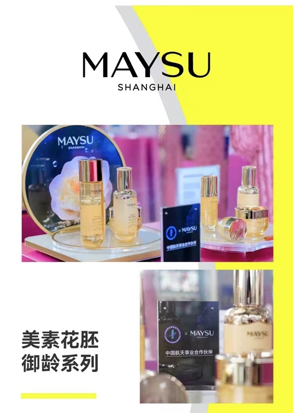 作为伽蓝集团旗下太空科技加持的明星品牌,美素花胚御龄系列在主展览区再次惊艳亮相,这个系列曾陪伴神舟十三号“感觉良好三人组”在太空中生活半年,其中,“太空霜”随之大火,成为许多消费者信赖的爆品。这款产品是针对太空超低温、强辐射、微重力的特点进行研发的,以在-196℃超低温萃取梅花花胚精粹为核心成分,为皮肤提供补水抗衰的解决方案。作为中国唯一一家拥有外太空护肤科技的化妆品企业,伽蓝集团始终秉持“天为地用、地为天用”的思路开发护肤品,持续助力中国航天事业。