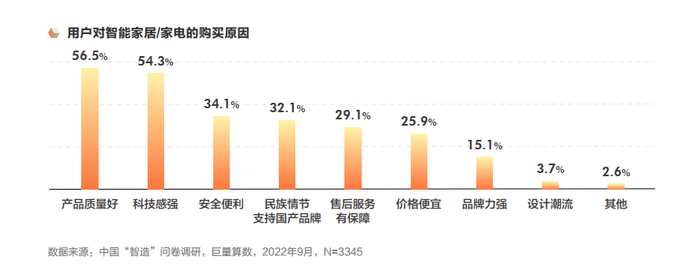 在这种背景下,购买家居或家电时,既要照顾儿童的安全需求,又能照顾老人的便利需求,安全和便利成为用户购买智能家居/家电的主要原因。