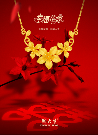 “金秋十月更是大婚之时”,历年来,国人都习惯将国庆“黄金周”选作为婚嫁的良辰吉日,而一直作为婚嫁吉物的“三金”、“五金”在此期间必然也受到消费者高度的关注,进而,珠宝市场也迎来“金九银十”的销售高潮,在此趋势下,国内知名珠宝品牌周大生率先整合国庆产品战略,组合“幸福花嫁”和“国家宝藏”等富有中国文化和深厚情感的文创系列黄金产品,以金色方阵“征战”市场,传情于消费者。