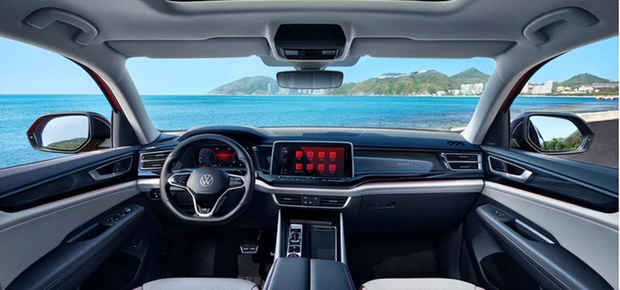全新途昂X的内饰大量运用笔直的线条进行修饰,表现出来的视觉效果非常不错,双层悬浮式仪表台的X-ray镭射光束式透光饰条,散发潮流运动风范。仪表台下层为飞翼式造型的软质包裹,搭配缝线设计,表现了极佳视觉效果和豪华感。搭配10.2英寸全数字液晶仪表、全触控数字空调面板、运动风格方向盘、拨片式数字换挡等,让用户行车途中全方位地被高级豪华质感氛围所围绕。