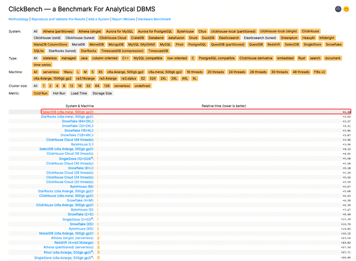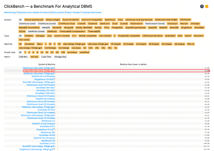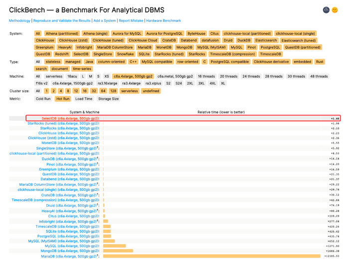 全球第一!新一代云数仓 SelectDB 登顶 ClickBench